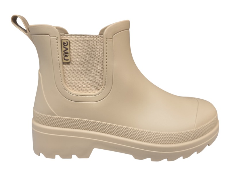 Bota de lluvia marca Rave modelo 31 en color beige, impermeable y práctica con diseño moderno para uso diario en climas húmedos