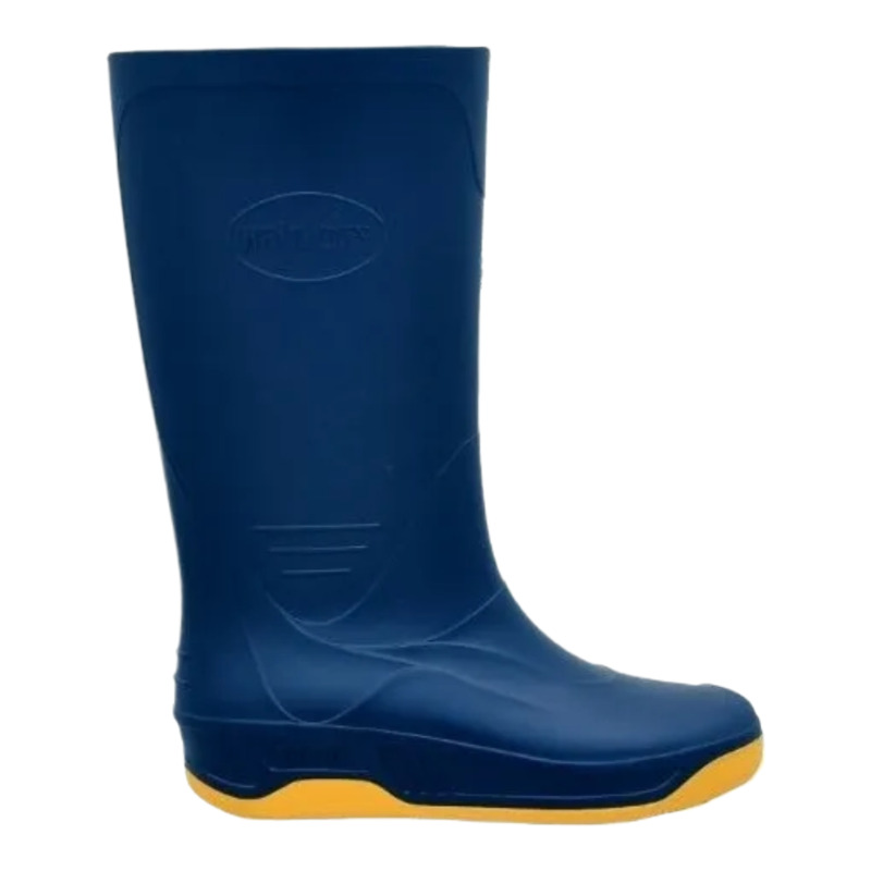 Bota de PVC impermeable, caa alta, suela antideslizante y estructura reforzada. Adecuada para trabajo general y uso prolongado.